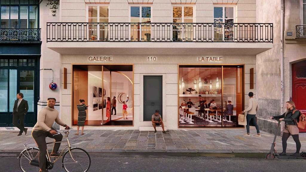 Dans une volonté de partage d’émotions et de mise en valeur des sens, ce nouvel espace comprend quatre lieux distincts – la 110 Galerie, la Table du 110, le 110 Secret et le Son du 110 – réunis au sein d’une même adresse dont la scénographie et le bâtiment ont été réalisés par Clément Blanchet.