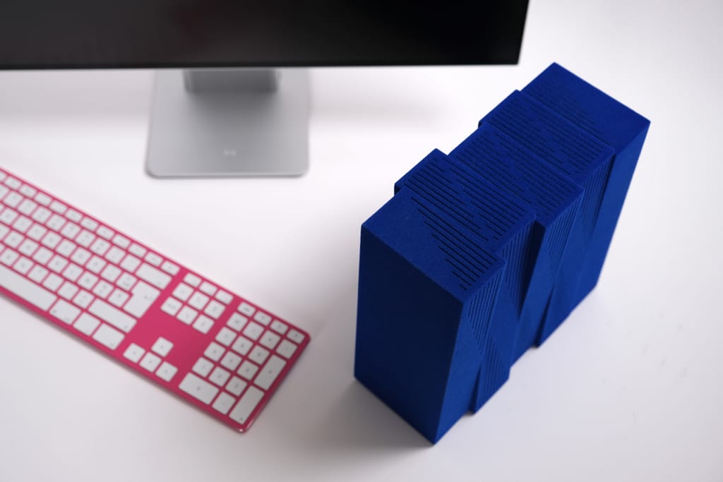 Le design moderne de RIDG a été imaginé par Pierre Cabrera pour plaire aux créatifs : « 5 blocs géométriques, entre suspension et stabilité, entre ordre et désordre. Ridg incarne la nature spectaculaire de la pensée humaine et sa capacité à faire ressortir une idée. Hommage à l’architecture cubiste, RIDG est fait de matières premières aux sensations variées, avec un accent passionné mis sur les détails faits à la main. »