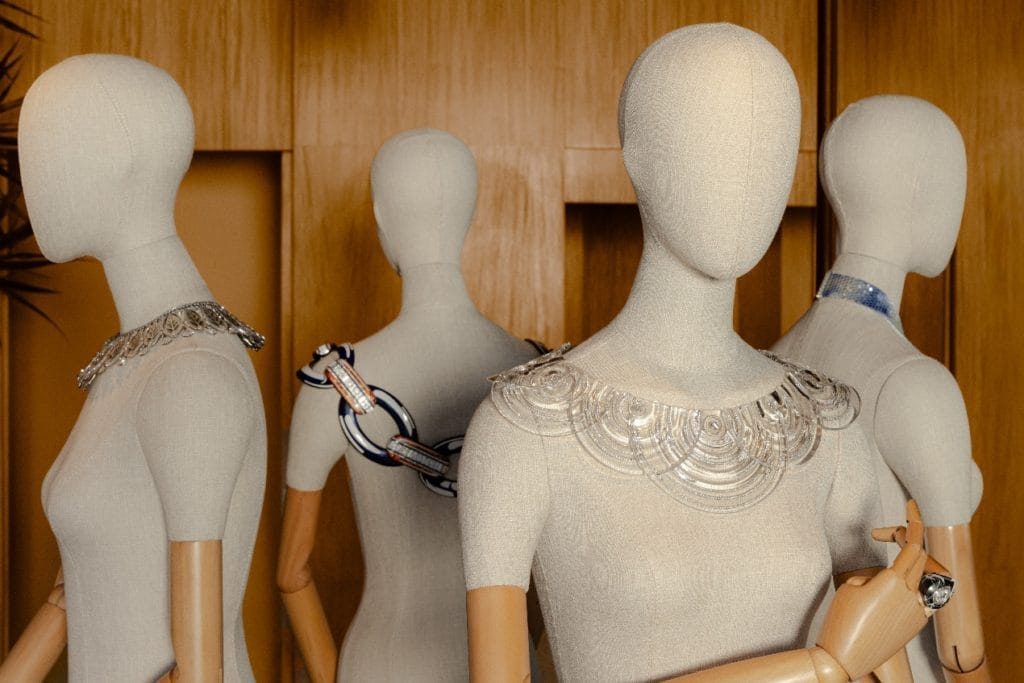 Enfin, un quatrième espace, ouvert sur les collines, célébrait la liberté du style. Dans une chambre baignée de lumière, les bijoux prenaient la place des vêtements : une métaphore du vestiaire joaillier selon Boucheron. Les icônes Quatre et Serpent Bohème dialoguaient avec les collections Plume de Paon, Flèche et Liseré.