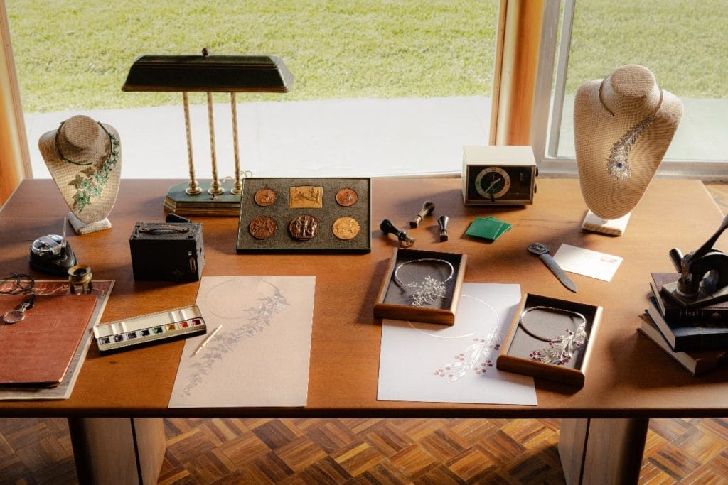 Sous la rotonde de la Harvey House, le premier espace tissait un lien entre deux lignées visionnaires : celle de Frédéric Boucheron, pionnier de la Place Vendôme, et la famille Wilcox, fondatrice du quartier d’Hollywood. Une reconstitution du bureau du joaillier parisien dévoilait son collier Point d’Interrogation, symbole de liberté et d’invention, entouré de pièces d’archives du XIXᵉ siècle célébrant le savoir-faire et la créativité qui font l’âme de la Maison.