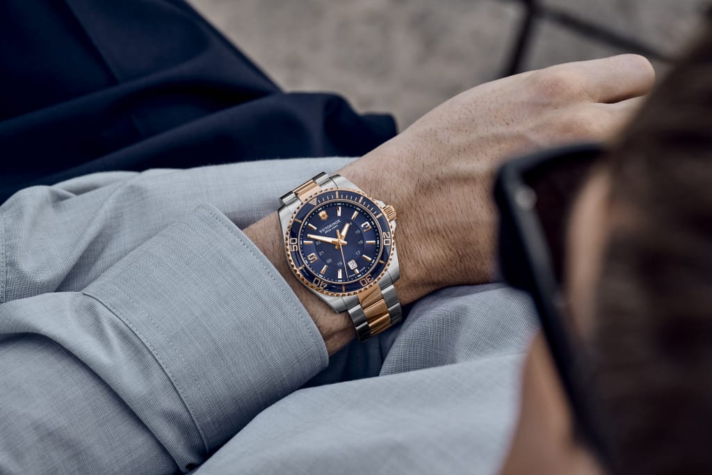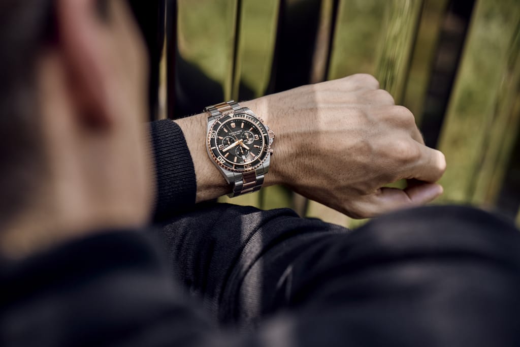 Pour garantir fonctionnalité et lisibilité, les aiguilles et les index polis revêtus de Super-LumiNova® ressortent avec assurance sur le fond brun, bleu, vert ou noir du cadran à la finition satinée soleil. Signe d’une rassurante fiabilité, son allure épurée conclut l’union du style et de l’action avec un bracelet en acier inoxydable. L’affichage de la date à six heures équilibre à la perfection l’emblématique écusson Victorinox placé à midi pour rendre hommage à son identité suisse.