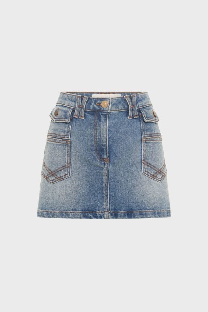 Un vent de liberté souffle également sur la silhouette avec une mini-jupe en denim, clin d’œil audacieux aux icônes rétro, tandis que la veste GD en jean total look joue sur une coupe structurée et décontractée à la fois, parfait équilibre entre modernité et héritage seventies.