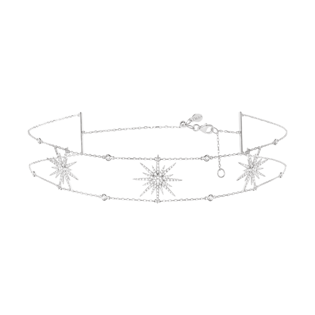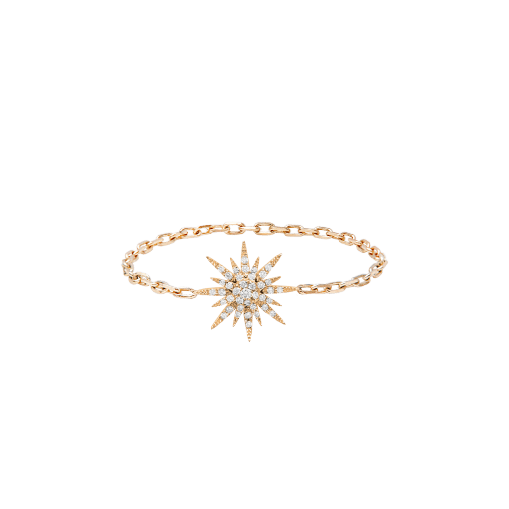 La Collection Soleil, véritable signature de Djula, incarne l’intensité d’un soleil à son zénith, capturé avec finesse et éclat. Chaque pièce, bague, collier, bracelet ou choker rend hommage aux rayons ardents du soleil à travers un motif stylisé, sculpté avec rigueur dans l’or jaune, blanc ou rose et serti de diamants scintillants. Le collier phare, conçu en or 18 K et pavé de diamants (0,39 ct), incarne cette alliance entre sobriété et lumière, illustrant la volonté de Djula de célébrer la féminité rayonnante . Les lignes fines et les chaînes délicates oracle de pureté se déclinent en lariat, choker ou bracelet-manchette, s’enrichissant parfois de multiples soleils miniatures ou d’ornements phalangiens, comme autant de constellations à porter au quotidien. Chaque bijou est ainsi un hommage à la lumière : une pièce joaillière précieuse, contemporaine et accessible, qui capte notre regard et révèle notre éclat intérieur.