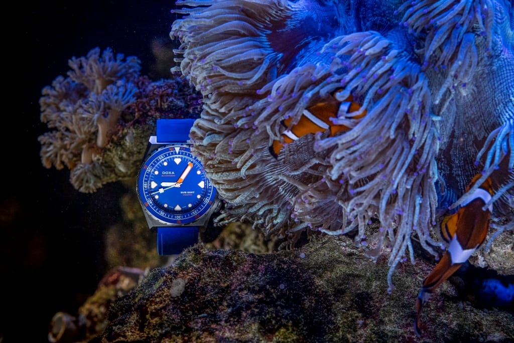 DOXA a été fondée en 1889 par Georges Ducommun. À la fin des années 1960, DOXA se concentre sur les montres de plongée et lance le concept révolutionnaire SUB considéré comme la première montre de plongée professionnelle véritablement ‘grand public’. Grâce à ses innovations, les montres de plongée sont rapidement adoptées par les plongeurs amateurs mais également par les plongeurs militaires. Est-il nécessaire de rappeler que le Commandant Jacques-Yves Cousteau, co-inventeur du scaphandre autonome et père spirituel de la plongée sous-marine moderne, appréciait beaucoup les montres DOXA. On voit régulièrement des SUB sur les poignets des plongeurs qui sautent de la Calypso pour emmener des millions de téléspectateurs sur les missions légendaires de « L’Odyssée sous-marine de l’équipe Cousteau ».