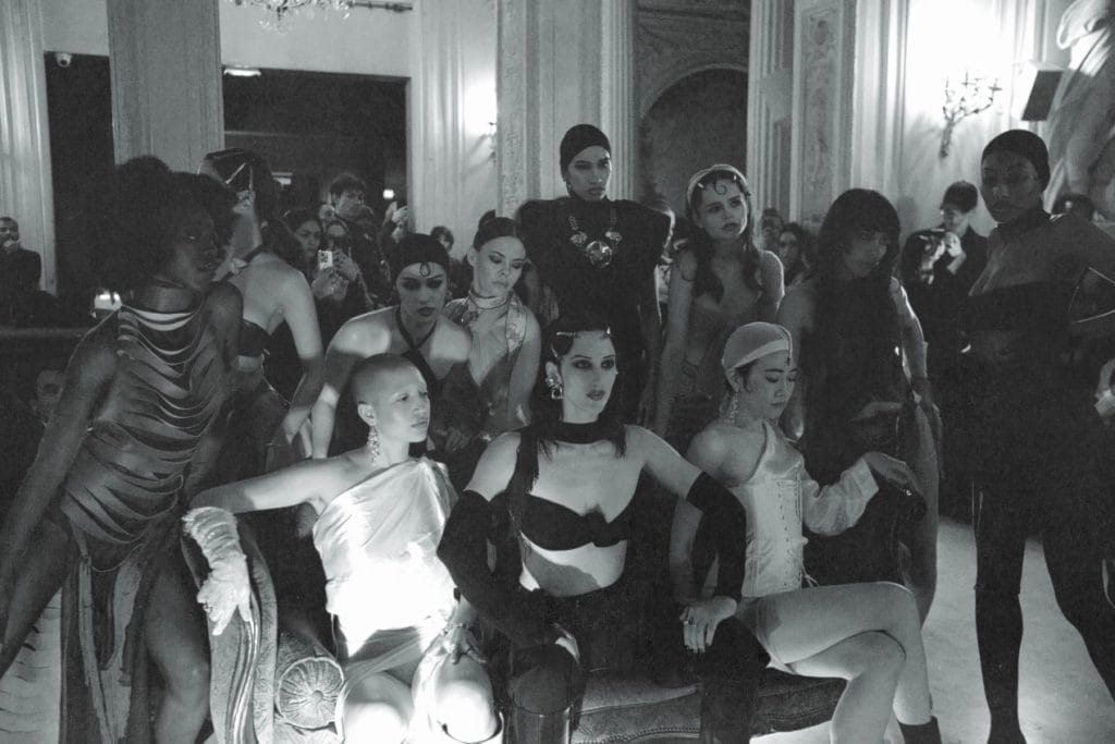 L’expérience proposée au Carmen ne ressemblait à rien de ce que l’on attend d’un défilé classique. Il s’agissait d’une fusion entre performance artistique, installation sonore et exploration textile. Dans cet espace feutré, l’atmosphère était chargée d’un symbolisme fort, où chaque silhouette semblait incarner un passage entre différents mondes, différentes temporalités.