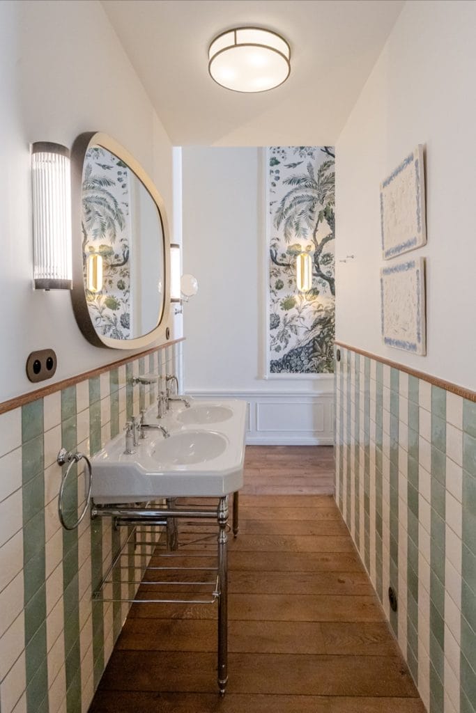 Les volumes historiques côtoient des matériaux nobles, les coloris varient d’une pièce à l’autre, et les meubles, conçus sur mesure par Maison Sarah Lavoine, ajoutent une touche de chaleur contemporaine.