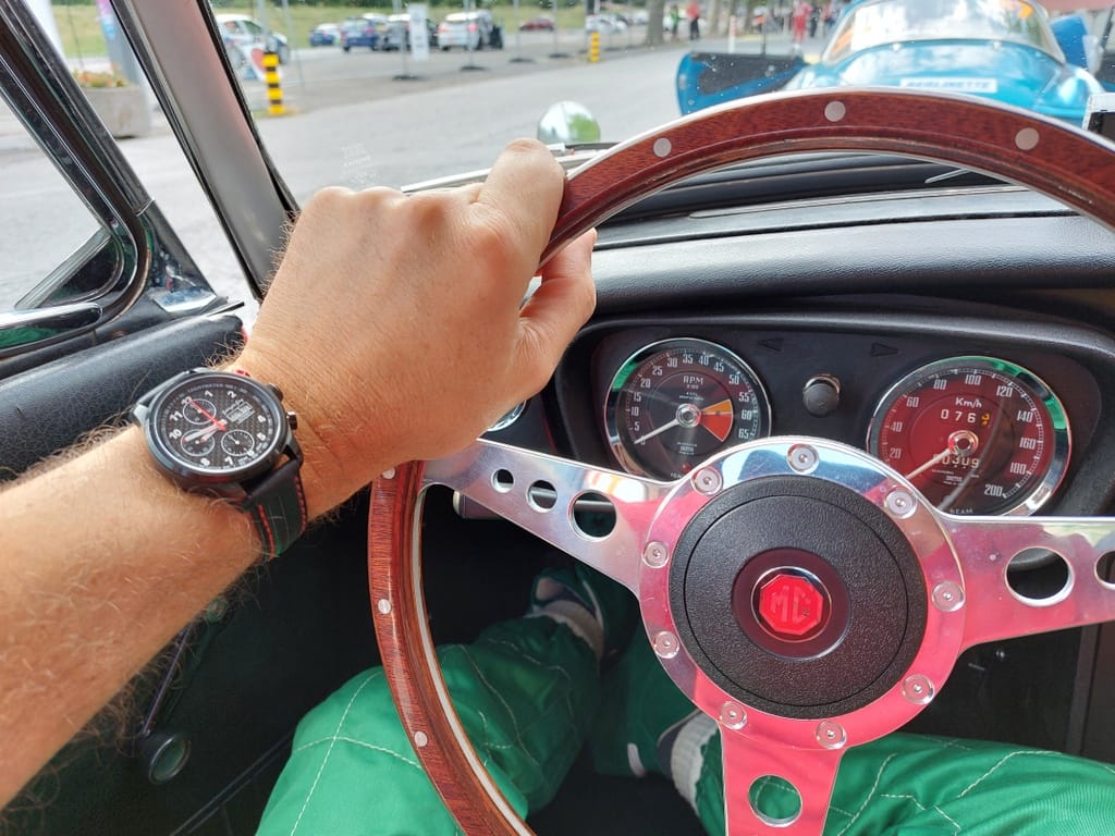Les deux ailes avant du bolide rouge portaient la marque de l’horloger des Bioux. Le pilote, lui-même petit fils de Georges Gay, concourait avec son chronographe Rocheray Compétition vissé au poignet. Le cadran carbone avec ses aiguilles blanches et rouges permettent une lisibilité instantanée. La grande aiguille rouge du chronomètre se distingue