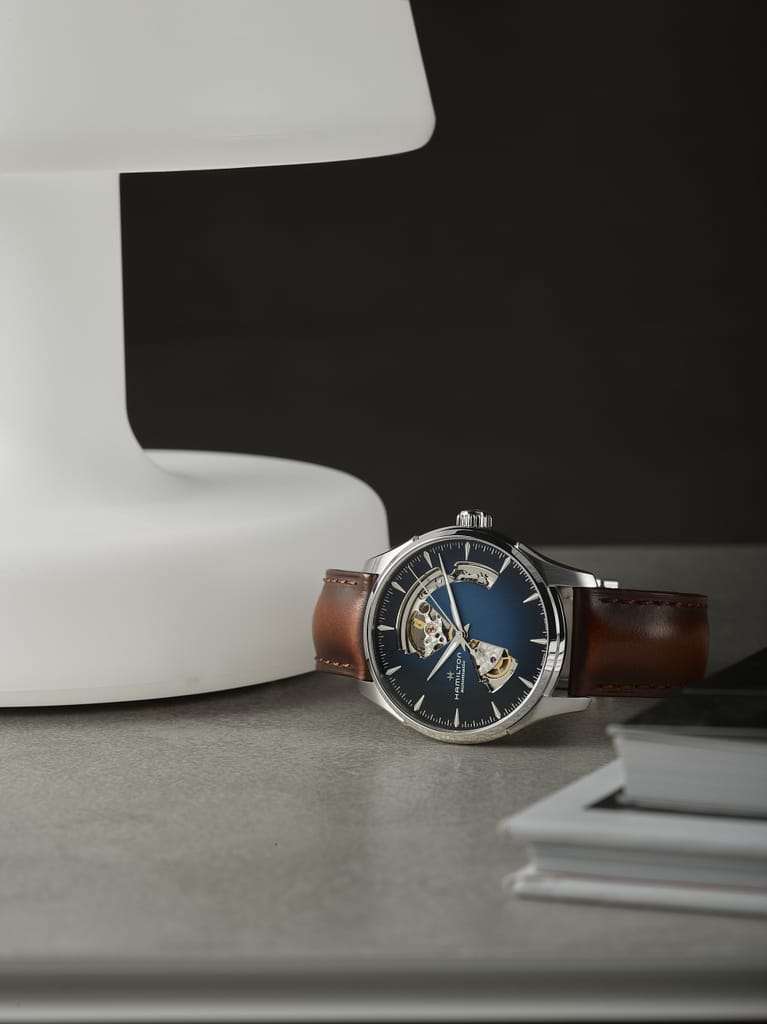 Ouvertures audacieuses, cadrans dégradés et bracelet en cuir effet patiné : la Jazzmaster Open Heart Automatic de Hamilton, montre classique habillée, se transforme en garde-temps moderne. Ces trois nouveaux modèles de 40 mm donnent à voir les merveilles de l’ingénierie de précision suisse dans un style unique conçu pour marquer les esprits.