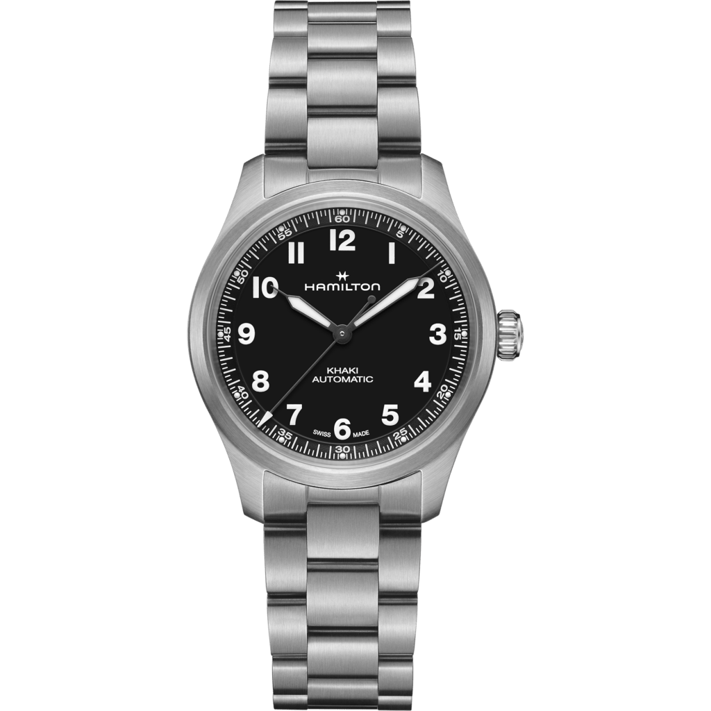 Sous son esthétique simple, la Khaki Field Titanium est animée par le mouvement automatique H-10, offrant une réserve de marche de 80 heures. Ce mouvement est également équipé d’un spiral Nivachron™, qui assure une résistance accrue aux champs magnétiques, aux variations de température et aux chocs, faisant de cette montre un véritable compagnon tout-terrain.