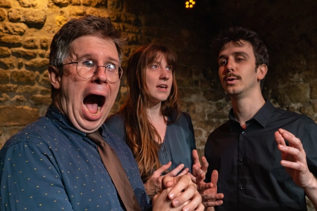 Depuis maintenant quatorze saisons, la compagnie professionnelle Again! Productions y convoque l’éphémère avec une grâce rare. Chaque samedi — et chaque vendredi à partir de janvier 2026 — trois comédiens et un musicien s’installent sur scène sans filet, portés par les propositions du public. Pas de texte, pas de mise en scène prédéfinie, seulement la magie de l’instant, servie par une équipe de virtuoses du verbe et du geste.