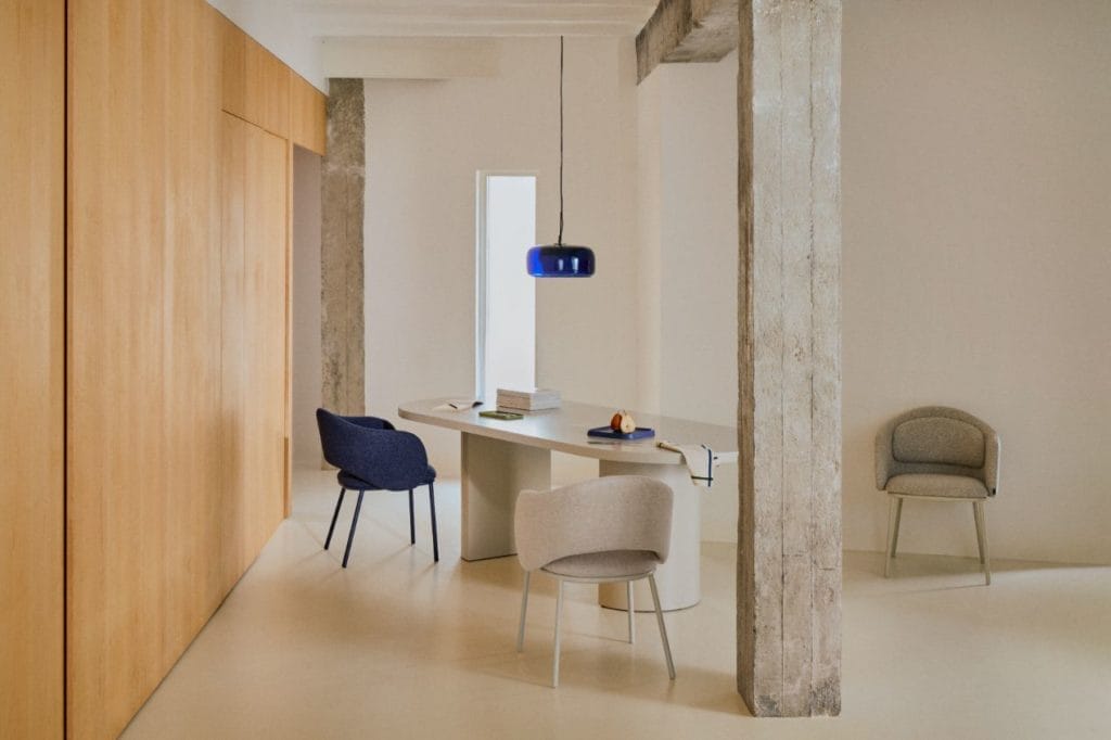 - Chaise Minda et table Nealy : Inspirée des années 1950, la chaise Minda offre un équilibre entre classique et moderne. La table Nealy, avec son design sculptural en placage de chêne, est simple et polyvalente. Elle peut être personnalisée grâce à ses pieds montables selon deux positions différentes, apportant ainsi flexibilité et esthétique.