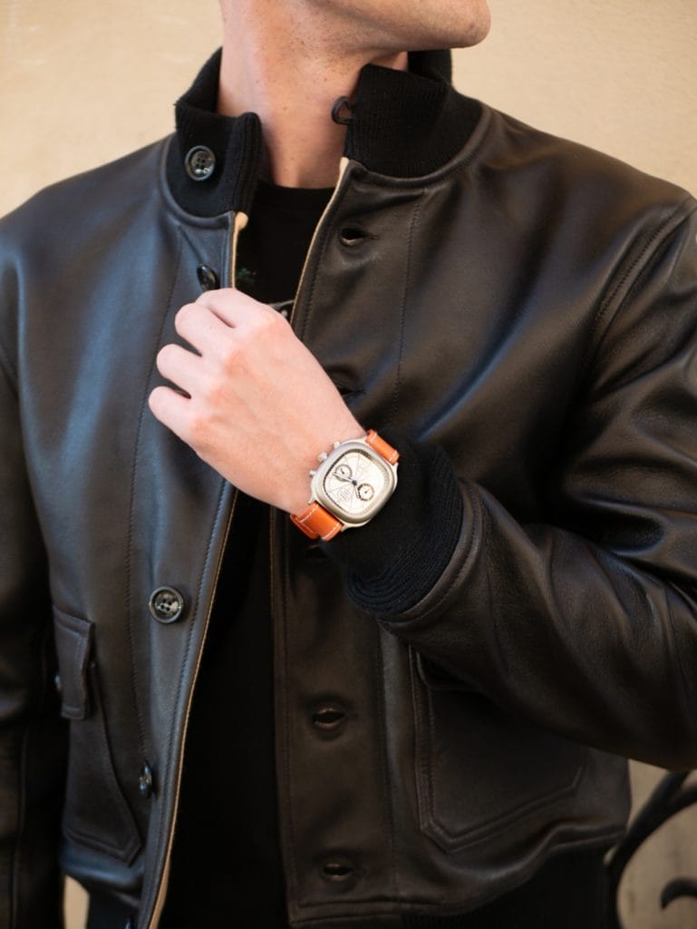 Il fallait oser, réunir une icône de l’horlogerie populaire française et un orfèvre du cuir d’aviation pour dessiner les contours d’un hommage vibrant aux années 70. Kelton, la montre des premiers salaires, des campagnes publicitaires culte (« Vous vous changez… changez de Kelton »), renoue avec Chapal, dont les blousons laqués habillaient pilotes de chasse et idoles yéyé avec la même assurance.