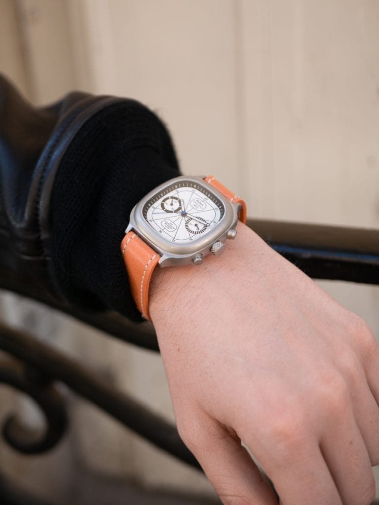 Ce chrono 1972 s’offre un boîtier acier sablé de 40 mm, franc et sans détour. Il ne cherche pas à flatter l’œil, mais à réveiller les souvenirs. Le calibre ST1901 qui l’anime, descendant direct du mythique Vénus 175 suisse, pulse à la main, dans le plus pur esprit mécanique. C’est un mouvement avec de la mémoire, un battement qui fait écho à celui des montres militaires des années 40 et aux chronos de pilotes des années 70. Un clin d’œil discret à l’histoire mondiale, côté poignet.