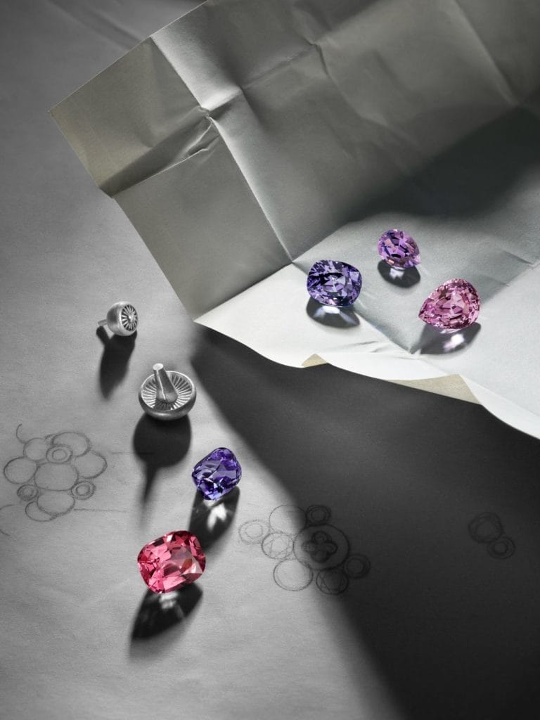 A l’aube d’une nouvelle ère, « Myriad » rend hommage à la division cellulaire avec des créations évoquant l’ADN hélicoïdal. Le thème suivant, « Symbiosis », célèbre les premiers écosystèmes terrestres, mettant en valeur des pièces féminines ornées de délicats spinelles violets et rose pastel.