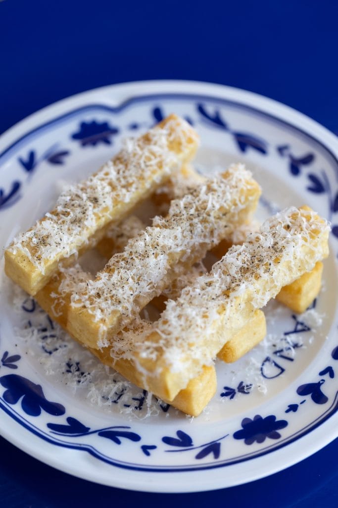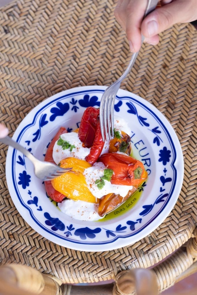 À midi, la cuisine s’ouvre sur une carte solaire : carpaccio de bœuf, croque à la truffe, entrecôte grillée, pizzas façon ruota di carro, escalope milanaise à partager, ou salades copieuses. La part belle est faite aux produits locaux et aux recettes niçoises : panisses, poivrons marinés, petits farcis, ou encore perrugines servies sur focaccia, à tremper dans une mayonnaise citronnée.