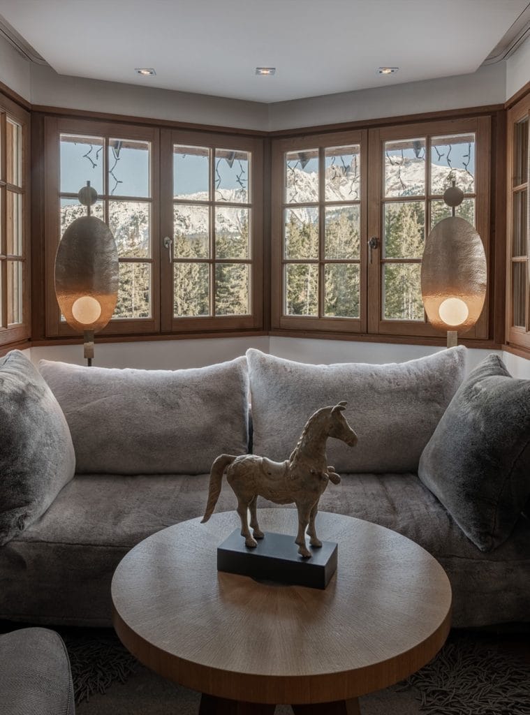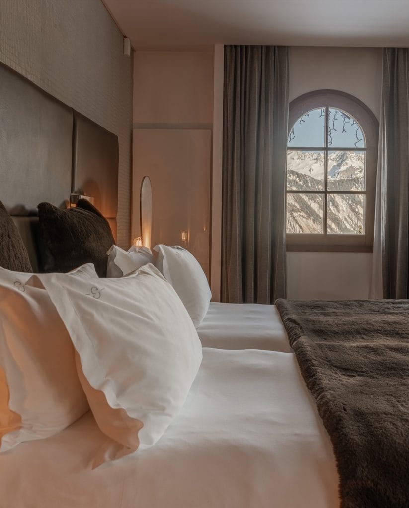 Le décor, imaginé par le studio Les Héritiers, marie bois, velours et lumière douce. Les espaces communs s’imprègnent d’une atmosphère feutrée, tandis que toutes les chambres et appartements s’ouvrent sur les pistes. L’hôtel abrite également une collection d’art brut exceptionnelle dont plus de trente œuvres d’Anselme Boix-Vives, apportant une dimension intime et culturelle à l’expérience.