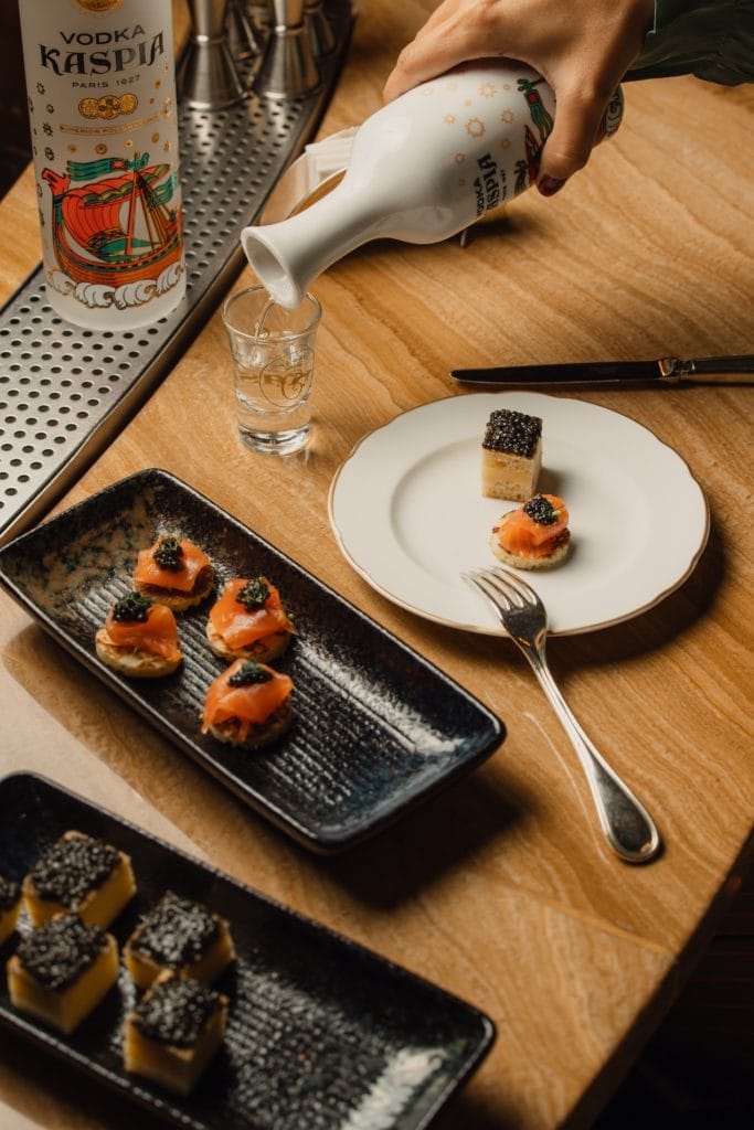 L’expérience s’accompagne des vodkas iconiques de Kaspia, d’une sélection de champagnes et vins, ainsi que d’art de la table exclusif décliné en édition limitée. Une collection lifestyle Hôtel de Crillon x Caviar Kaspia (verres, cuillères en nacre, plaids, accessoires) prolonge cette immersion au-delà de la table.