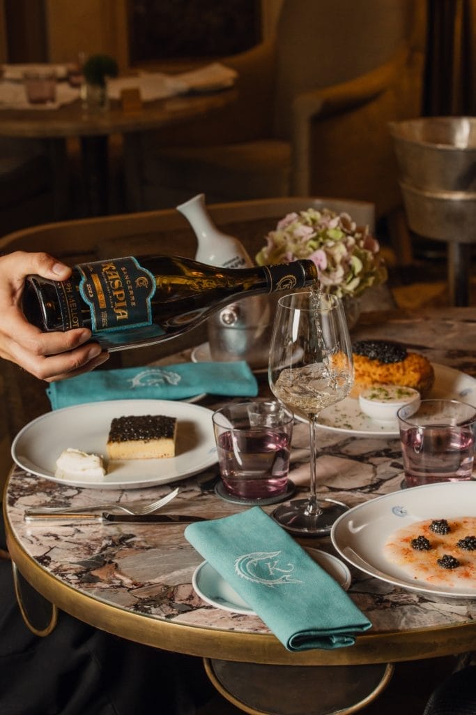 Le menu conçu pour l’occasion fait voyager les convives entre dégustations pures et accords audacieux : ceviche de daurade aux agrumes et poutargue, agnolotti au king crabe, sans oublier les incontournables emblématiques de la maison : pomme de terre au caviar, club sandwich au saumon, salade de crabe royal ou encore tarama.