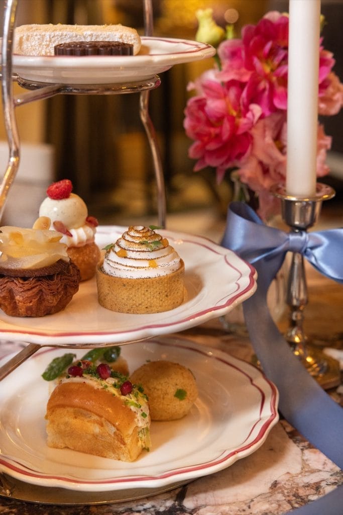 Côté gastronomie, le Chef Pâtissier Matthieu Carlin réinvente le tea time à la manière de la reine : croque à la truffe, foie gras au chutney, religieuse à la rose, tarte au citron Earl Grey, brioches à la mûre et violette, le tout sublimé par une coupe de Rare Champagne et servi dans la collection Marie-Antoinette de la Faïencerie de Gien. Un piano Alpange installé dans le lobby accompagnera ces instants par une atmosphère musicale raffinée.