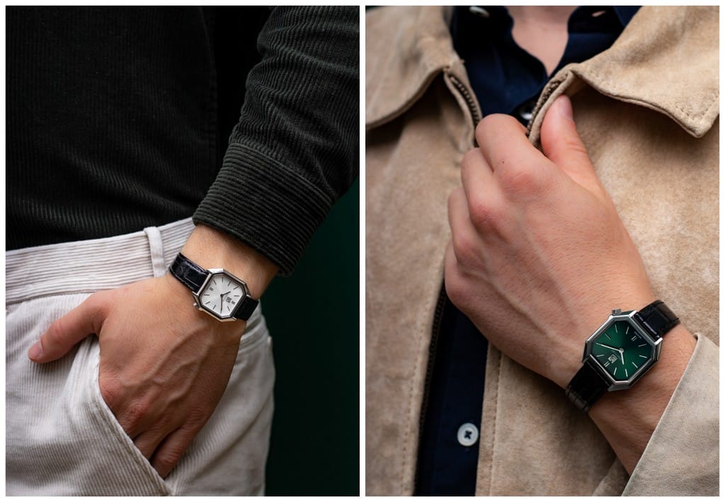 La nouvelle version de la Mansart : March LA.B Dandy Mansart séduira les femmes et les hommes amateurs de petits garde-temps avec son boitier octogonal en acier de 30 cm. Cette montre très féminine et androgyne à la fois trouve sa place entre la Mansart de 34 mm et la Lady Mansart de 26 mm.