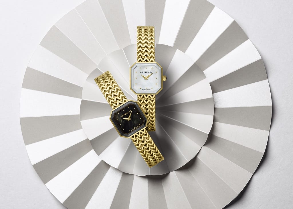 Nouvellement habillée de PVD or jaune, cette montre Octogône, signée Michel Herbelin, se singularise par le chic de son allure. Bracelet à chevrons typique des années fifties, taille XXS et boîtier à l’esthétique minimaliste confèrent à cette nouveauté un look vintage revisité avec modernité. So glam.