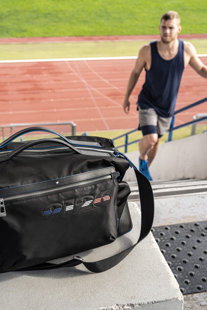 Montblanc s’est associé à l’athlète et décathlonien Kevin Mayer pour créer une collection capsule. Montblanc X 9126 by Kevin Mayer comprend un sac de voyage et une pochette assortie, fabriqués en nylon régénéré noir avec des détails en cuir. Le chiffre 9126, brodé en haute fréquence pour une mise en relief, est une référence au record du monde établi par Kevin Mayer.