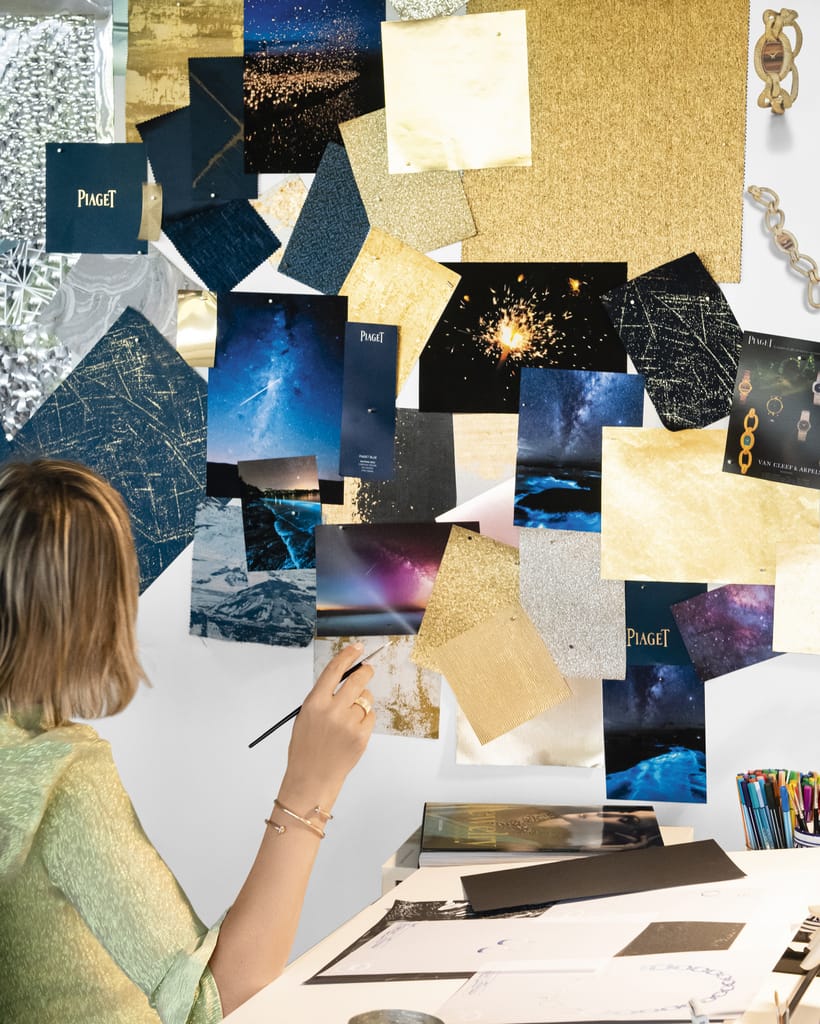Enfin, alors que le spectacle lumineux commence à disparaître, la Piaget Society se rassemble encore une fois, à jamais liée par la magnificence et les merveilles auxquelles elle vient d’assister. La montre Celestial Dance rend hommage à ces souvenirs, reproduisant le ciel nocturne grâce à un motif de marqueterie de haute volée, soigneusement créé par l’artiste Rose Saneuil, qui met son incroyable savoir-faire technique au service de la décoration du cadran.