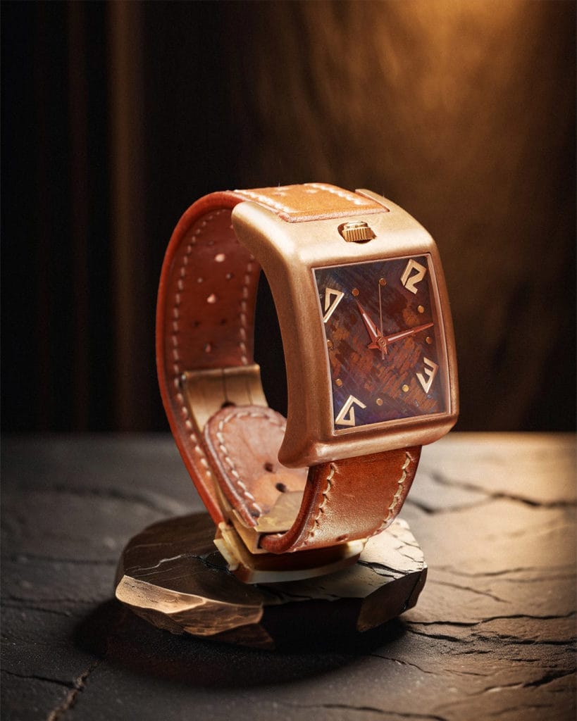 Le modèle Qartel se distingue par son boîtier incliné d’un quart de tour, offrant une lecture de l’heure intuitive sans incliner le poignet. Ce concept original, né de la passion de Tremolosa pour la moto, permet une lisibilité inédite grâce à des chiffres décalés et un cadran qui épouse parfaitement le poignet.