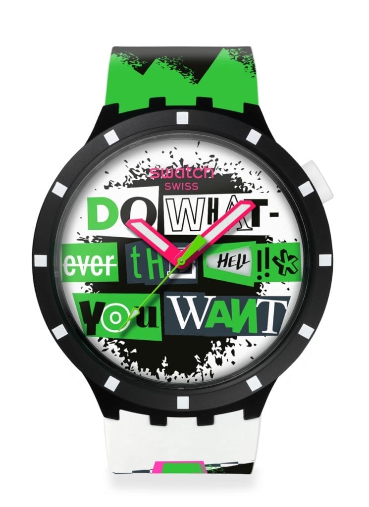 Le final est spectaculaire. Montre oversize, damier néon, dateur excentré et un message volontairement inachevé : DO WHATEVER THE … YOU WANT. À vous de conclure. Tout est dit, ou presque. Le reste appartient à celui ou celle qui la porte.