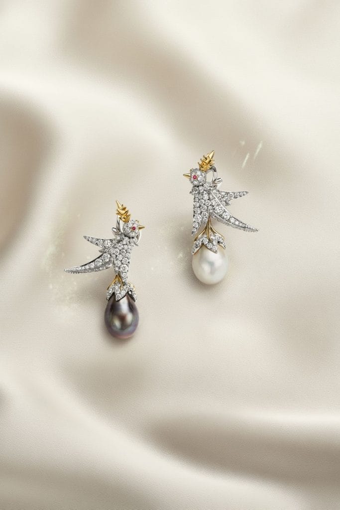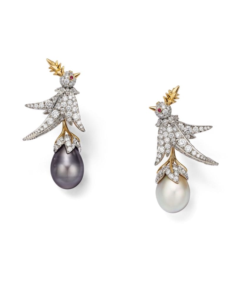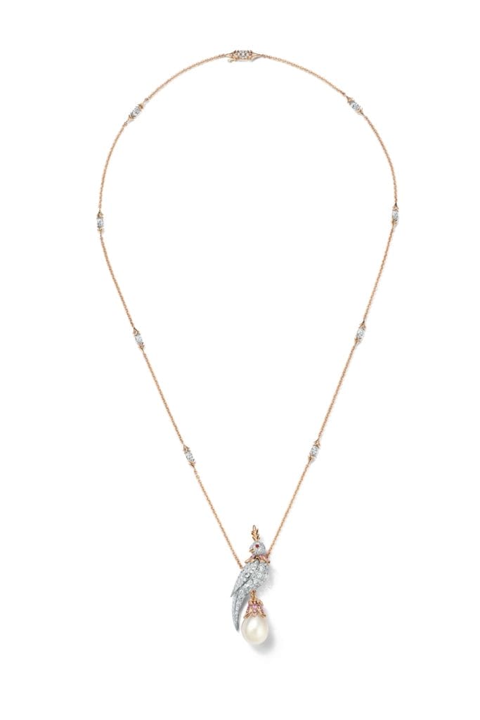 Ces pièces uniques incarnent la fusion entre nature et haute joaillerie, où chaque perle devient une sculpture vivante, magnifiée par l’éclat des diamants et la finesse du sertissage Tiffany.