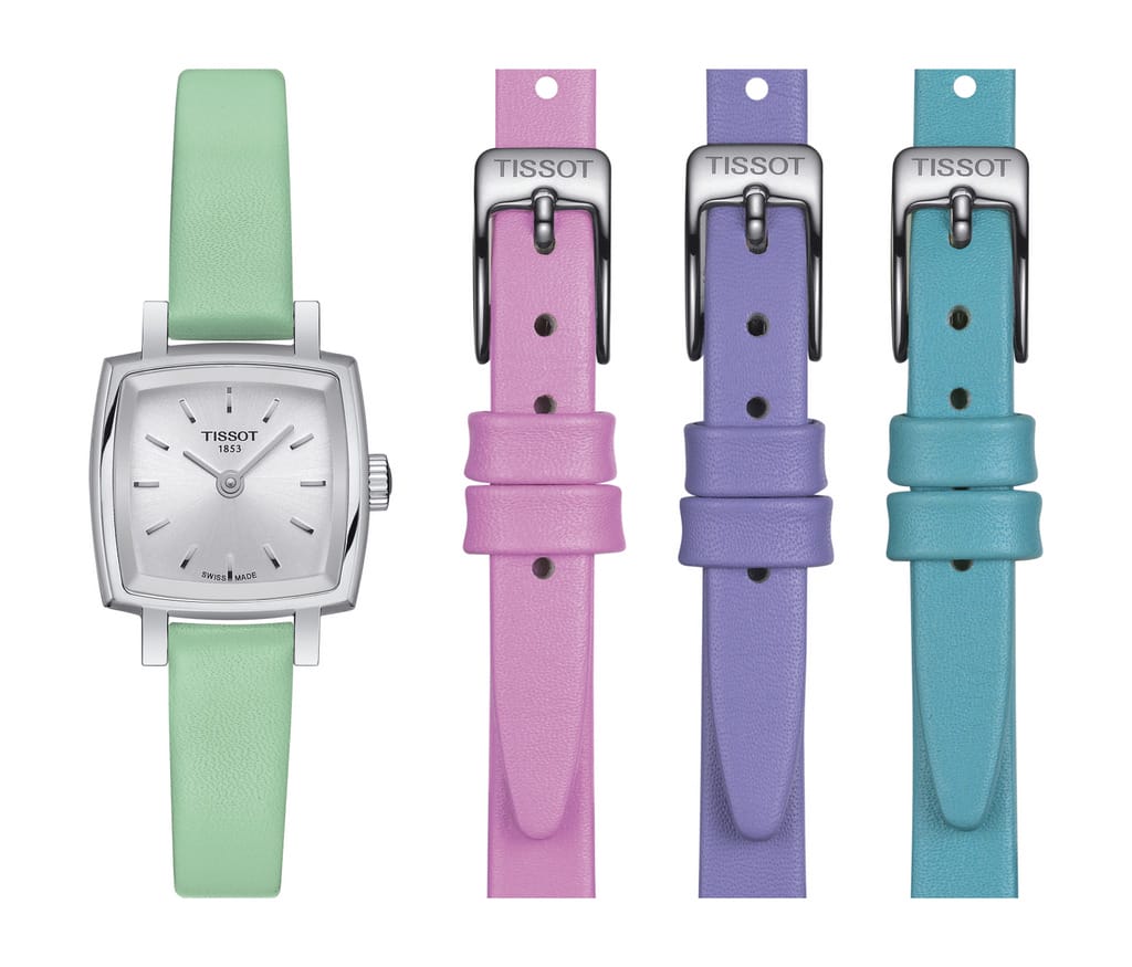 Créée en hommage aux petites montres dames Tissot des années 1960, la Tissot Lovely présente un design carré, avec une ouverture de 20mm, une glace épaisse facettée rappelant un diamant, ainsi qu’une boîte élégamment satinée et polie. Avec ses 4 bracelets colorés, ce modèle permet toutes les audaces. Elle s’adapte parfaitement à votre style et apporte une touche colorée à toutes vos tenues, idéal pour l’été.