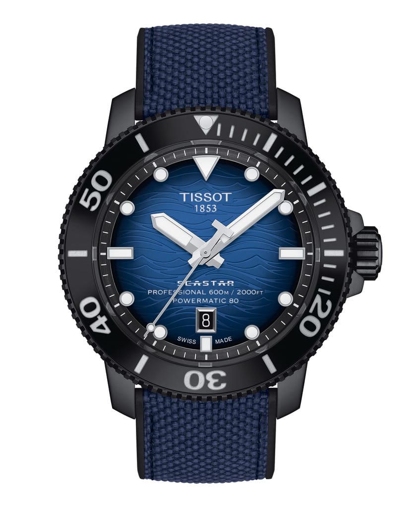 La famille des montres de plongée Tissot accueille une nouvelle ligne, plus technique et experte, la Tissot Seastar 2000 Professional d’un diamètre de 46 mm Visuellement, elle se distingue par sa silhouette musclée, en acier inoxydable, avec une option de revêtement PVD noir. Ce modèle est équipé d’un mouvement automatique antimagnétique Powermatic 80, étanche jusqu’à 60 bar (600 m), d’une lunette tournante unidirectionnelle en céramique, d’une couronne vissée avec protection, de détails Super LumiNova®, d’une valve d’échappement à hélium automatique et de la certification ISO 6425 ( pour les montres de plongée. Avec son cadran bleu dégradé à motif de vagues et son design sans compromis, c’est un garde temps destiné aux amoureux du style nautique extrême.