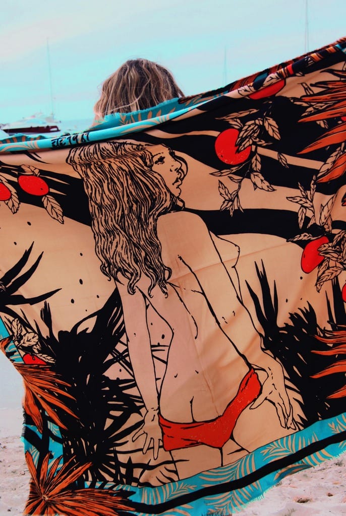 De fil en aiguille, est née une collab dont elles sont particulièrement fières. Avoir une icône sensuelle de « été 1981 » par Delphine Cauly, illustratrice aux inspirations eighties, sur un des tee-shirts de la collection Wild et quatre de leurs foulards.